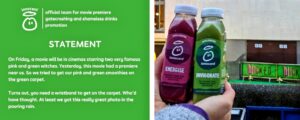 Their most recent masterpiece was showcased in a Twitter thread, in which they poke fun at themselves failing to land tickets to the recent premiere of Wicked. Clearly, not one to defy their audience (or gravity, for that matter) they took a delightfully unstaged photo of their Energise and Invigorate smoothies with the stage door in the background. The Glinda and Elphaba comparison in the visuals combined with the less-than-stellar photo quality perfectly embodies the impish, mischievous tone that pervades the brands entire online persona – and it’s one that businesses could learn from.